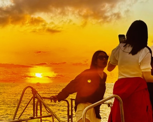 End your day the way we do — take a dip and sail under the beautiful amber sky of Waikiki.