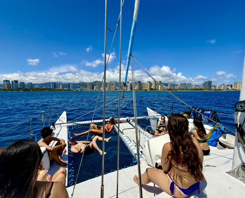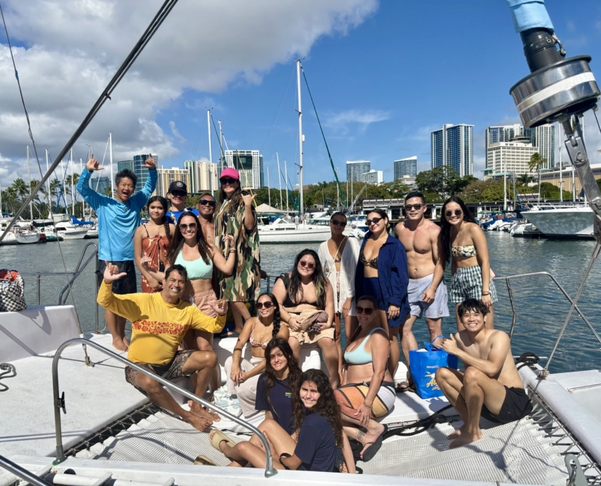 Imagine having our 35-passenger catamaran all to yourselves. No crowds. Just your favorite people and the rhythm of the Pacific.