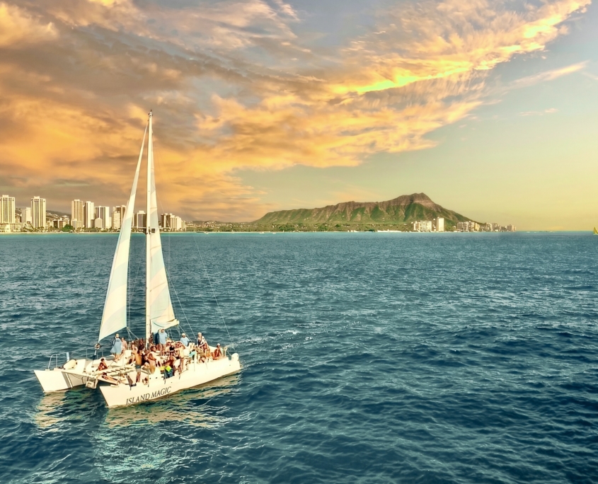End your day the way we do — take a dip and sail under the beautiful amber sky of Waikiki.
